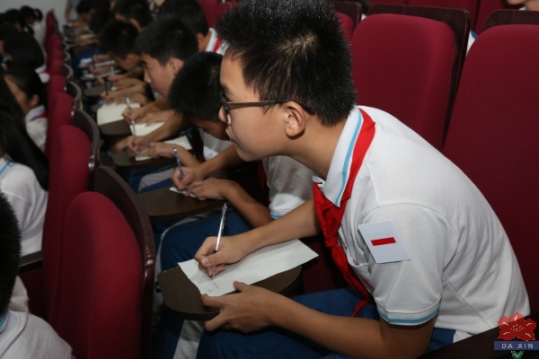 在整个视频学习过程中,大信学校报告厅内学习气氛浓厚,师生听讲认真,仔细记录了知识要点和感兴趣的问题。视频结束后,孙慧涛主任抓住学生学习兴致高昂,交流意愿强烈的教育契机,及时组织学生们就学习内容、感想及收获充分展开讨论与交流,并在最后梳理了本次全市班会课活动的的知识要点,鼓励了学生学法守法的热情,鼓舞了学生面对不法侵害时勇于以法律为武器保护自我的勇气。