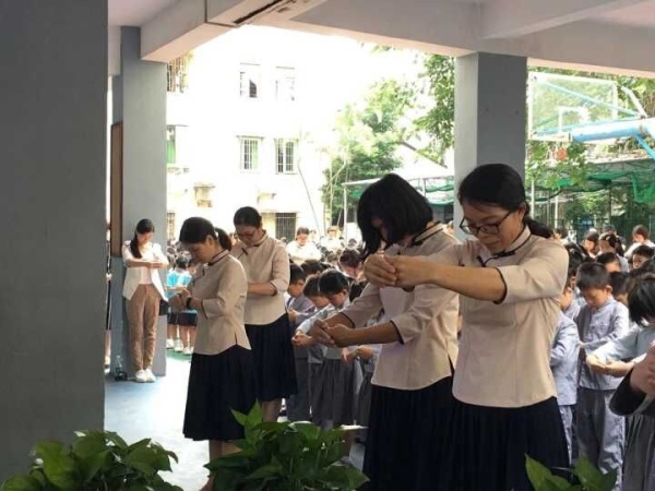 9月28日是一个特殊的日子,是我国伟大的思想家、教育家、儒家学派创始人至圣先师孔子诞辰2569周年纪念日,也是博爱小学全体老师的教师节,为倡导经典文化的回归,弘扬中华尊师重教的传统美德,感受古代与现代教师节不同氛围,博爱小学全体师生及家长代表于早上8:30分,聚集学校大堂,举行“习华夏礼乐,传圣贤智慧” 释菜礼活动。