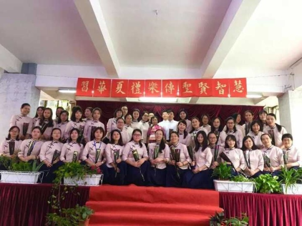 释菜礼结束后,虞彩花校长致辞,虞校向全校教师致以节日的祝福,并向同学们说明了学校为何每年9月28日都举行释菜礼,因为这是一种传承,希望通过这种传承,每位同学都能感念老师的教育之恩,以此激励同学们能正心修身,努力向学!做社会上有用的人。