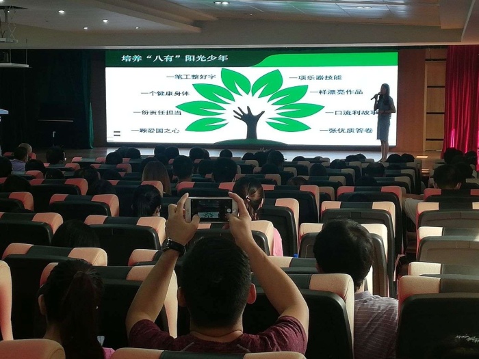 与此同时,新生家长培训会在综合楼六楼演播室有序地开展。本次新生家长培训由冯丽芬副校长主持,冯校长围绕学校基本情况、学校发展目标、学校具体要求以及家校合力的四个着力点与家长进行交流。随后,周瑞珍校长发言,建议家长多与学校沟通,家长无需焦虑,多理解孩子,共同为孩子营造一个温馨轻松的学习生活环境。