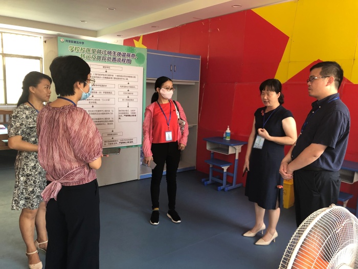 检查组一行在胡冬梅副校长的带领下对学校的开学准备、疫情防控、校园安全、规范管理以及师生返校等情况进行了资料的查看,详细询问,实地查看了校园环境、食堂、保健室、留观室、防疫物资储备室等区域,检查组对学校的工作给予了肯定,并就进一步做好开学后秋季防疫工作提了建议,希望学校能进一步统一思想,加强常态化疫情防控管理,确保开学工作有序、安全、稳定。
