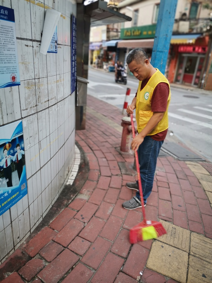 此次卫生清洁活动分三个地点开展:地点一从校园东门的校门门口;地点二从校园南门门口;地点三从校园东门到南门围墙外。党员带上工具在校园内、校外周边工作,将清理卫生死角作为此次系列活动的第一站。对学校东南门的门口两边的树叶和泥沙进行清理,把校园外的一条街道打扫干净。在清洁过程中,党员志愿者们在校园外面有的清扫路面纸屑、烟头等废弃物及枯枝落叶;有的用铲子等工具清除街边砖缝的烟头、饮料吸杯等杂物,努力清除卫生死角;有的擦拭校外的宣传栏灰尘。大家热情高涨、挥汗如雨,以劳动为荣、以付出为乐,发扬了不怕苦、不怕累、不怕脏的奉献精神,以实际行动为国庆贡献一份力量。 经过党员志愿者们的同心协力,校园内外被打扫的干干净净,整体面貌焕然一新。