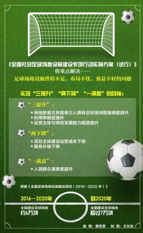 今年7月,国家发展改革委、体育总局、国务院足球改革发展部际联席会议办公室(中国足球协会)共同制定了《全国社会足球场地设施建设专项行动实施方案(试行)》。