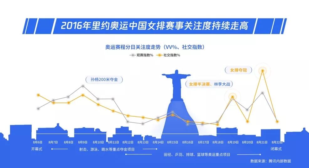中国女排具有超高的市场关注度众所周知,中国女排是中国三大球中唯一一支获得世界冠军、奥运冠军的球队。自上世纪80年代成就“五连冠”成绩后,中国女排一举成为中国大众的精神图腾。在伦敦奥运会上不敌日本队后,中国女排曾经历短暂的低谷期,也正是在这一背景下郎平再次临危受命,重新执掌中国女排。令人惊喜的是,这支有队魂的球队,仅仅用了2年多的时间,就在2015年世界杯上重回世界之巅,并成功地在一年后的里约奥运会上斩获冠军。中国女排所承载的永不放弃、勇攀高峰的“女排精神”也再次成为民族精神和时代精神的最佳代言。回顾惊心动魄的2016年里约奥运会女排决赛,中国女排对阵塞尔维亚,收视份额竟高达59%,这表明有超过一半的中国电视观众都在收看这场比赛。