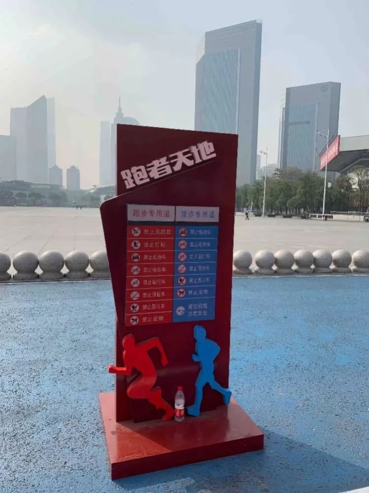 11月15日上午,记者来到天河体育中心“跑者天地”,其是环绕体育场外围的塑胶跑道,分成蓝色和红色两种跑道,根据现场指示牌显示,其中红色跑道为跑步专用道,禁止高跟鞋、钉鞋、机动车、电动车、自行车、滑板车、婴儿车、宠物等出现在跑道上,其接触面跑起来感觉较有弹性。蓝色跑道为健步专用道,禁止机动车、电动车、自行车、滑板车、婴儿车、宠物等出现在跑道上,走在上面接触面感觉偏硬。