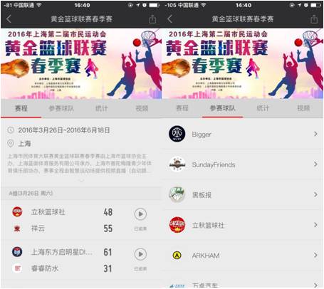 每个视频可通过app进行H5、微信朋友圈微博等及时分享,特别喜爱的精彩片段也可通过app进行收藏与下载。比赛结束后,智慧运动场还会提供全场比赛的录像下载。不仅如此,智慧运动场还为联赛建立专属页面进行展示: