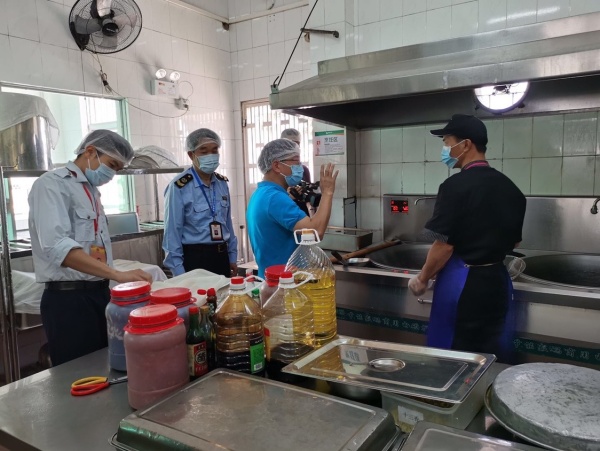 市场监督局民众分局相关负责人对照条款核查饭堂台账资料,并询问食堂负责人各项工作的落实情况,并对学校食堂工作提出了一些宝贵的建议。