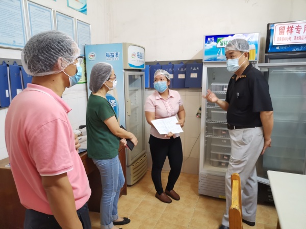 在民众中学行全体政成员的陪同下,检查小组对民众中学的防疫配套设施的装配、使用情况进行了详细的询问。深入学生教室、食堂、宿舍、医务室、隔离观察室、物资储备室等重点场地,再次实地检查卫生、安全等防疫措施落实情况。随后,督导小组并与各负责人进行现场交谈,查看开学复课的准备、疫情预案制定和防疫物资配备等资料。验收小组对民众中学一系列开学防控准备工作提出高度赞赏,刘钊妍副镇长表示,学校要抓紧抓实抓细校园疫情防控的每一个环节,牢牢守住安全底线,确保万无一失。