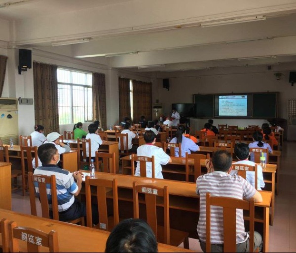 镇疾控中心黄良辉医生非常专业地向参加培训的人员详细讲解了教室、食堂、宿舍等场所消毒的流程、步骤及注意事项。黄医生从消毒剂的常用种类、消毒液的合理配制、如何科学规范使用消毒剂、消毒操作规范及注意事项、消毒喷雾器的选择等方面都作了深入细致地说明。另外,黄医生提醒宿管人员和食堂后勤人员,对学生的生活垃圾及饭后残余一定要处理好,时刻引导学生注意勤洗手、搞好个人卫生、养成良好卫生习惯。最后,黄良辉医生进行现场演练,并让民众中学相关人员反复练习以确保他们熟练掌握。