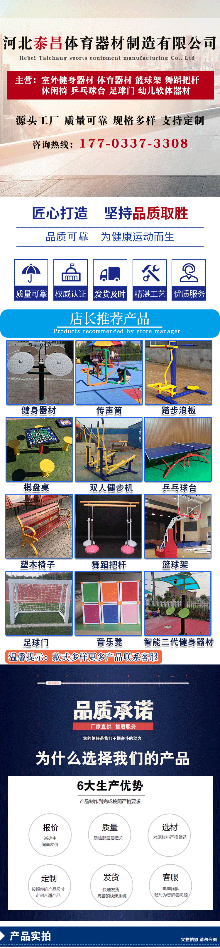 河北泰昌体育器材制造有限公司是室外健身器材、舞蹈把杆、乒乓球台、幼儿软体器材、儿童滑梯、体操垫、中小学体育器材制造商,是在原盐山体育器材厂的基础上组建而成,坐落在武术之乡沧州境内,东即渤海之滨。南衔济南,北靠津京,是华北地区生产室外健身器材、户外小区健身器材的大型企业。