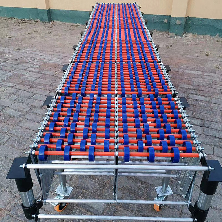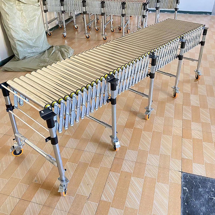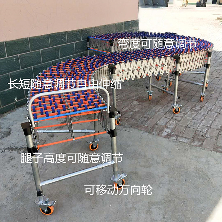 伸缩式辊道输送机卸货神器它是利用可伸展的组件做机架的输送机。