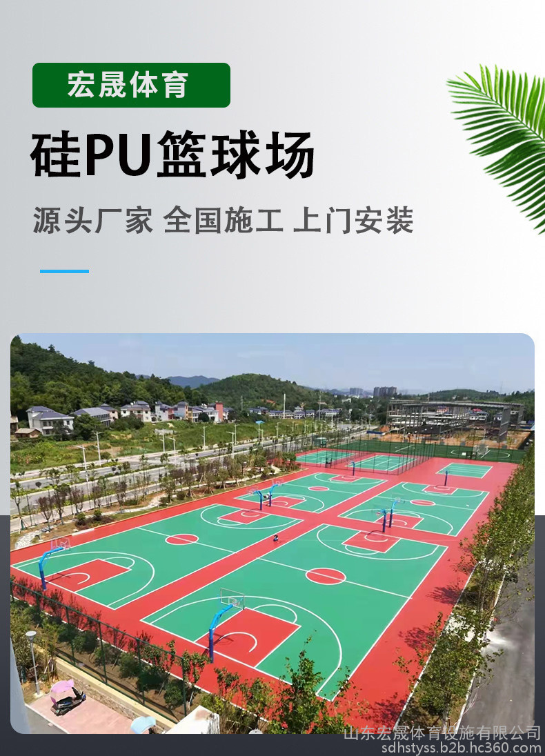 宏晟体育款式定制 硅pu球场、塑胶球场、丙烯酸篮球场、硅pu塑胶球场,防水抗滑专业施工团队安装塑胶跑道工程