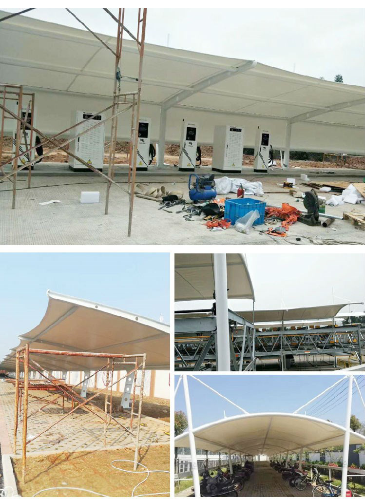 台州市钢耐膜结构工程有限公司是一间从事金属结构工程以及空间张拉膜结构工程的开发、设计、生产、销售、服务如一体的专业厂家。 主营产品有: 一:张拉膜雨篷、铝塑板雨篷、玻璃雨篷、阳光板雨篷; 二:张拉膜车棚、阳光板车棚、彩瓦车棚 、热合帆布车棚、汽车充电桩车棚、太阳能光伏车棚; 三:不锈钢岗亭、彩钢岗亭、铝塑板岗亭、玻璃岗亭; 四:各种金属结构厂房、天桥工程; 五:不锈钢候车亭、路牌、标志等; 企业自创建以来,坚持以人为本,精益求精,追求品质的经营理念。以良好的企业文化氛围,吸引大批来自五湖四海,有着多年金属结构工程制作的精英。打造出了数支经验丰富,高效率,高素质的施工队伍。 公司以质量树形象,以信誉求发展,竭诚与社会各界朋友合作,以良好的品质,实惠的价格,用铁的产品和钢的信誉,恭候您的光临和来电。