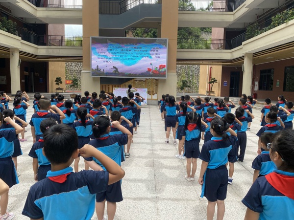 6月24日大课间时间,在学校中庭开展2020年“书香校园·护苗·禁毒·绿书签行动”禁毒宣誓、签名承诺活动,由大队辅导员叶老师带领全校师生禁毒宣誓,接着分班进行签名。下午,“让祖国花儿更鲜艳”马岭小学讲故事比赛在多媒体室举行,同学们表现非常精彩。