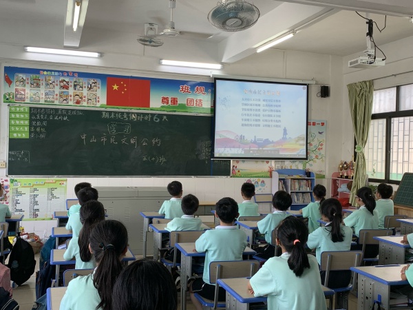 为培养和弘扬社会主义核心价值观,提高市民文明和社会文明程度,提升城市文明形象,2019年6月21日,竹秀园中心小学组织学生学习《中山市民文明公约》。