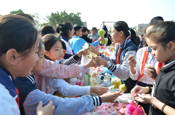 此次爱心义卖中,孩子们为筹集更多的善款,可谓“八仙过海各显神通”。各个班级尽心竭力,巧花心思地布置摊位,把自己提前精心准备的“产品”放在指定摊位最显眼的位置上,有各类课外书及学习用品,有可爱的玩偶玩具,还有自己亲手做的小手工等,东西琳琅满目,争相吸引周围的人们来采购。宣传形式多样,营销方式也大胆奇特,有的大打折扣,“跳楼价”甩卖吸引顾客的目光;有的“流动商家”带上自己的“产品”到处找寻购买者;有的抽奖、玩游戏,趣味十足。同学们争相选购自己心仪的物品,尽己所能献爱心、行善举。