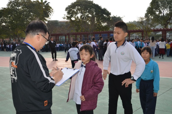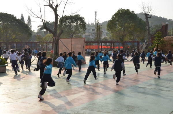 随着警铃的响起,疏散演练拉开了序幕。学校领导、老师迅速组织同学们撤离教室,在全体教师的有序组织下,学生迅速疏散到操场。撤离过程中,同学们时刻保持警觉,弯着腰、压低身体迅速前进,孩子们熟练地利用自己的手或者衣物捂住鼻口,防止烟雾的吸入。楼上的班级和老师一起下楼梯。在老师的引导下,有序地沿左、中、右3个楼梯口疏散。从警报响起到800多名全体师生就位于安全地点,用时2分15秒,疏散演练的效果显著。同学们到达指定疏散地点后,各班立即汇报人数,班级班干部向相关老师报告疏散情况以及到场人数。