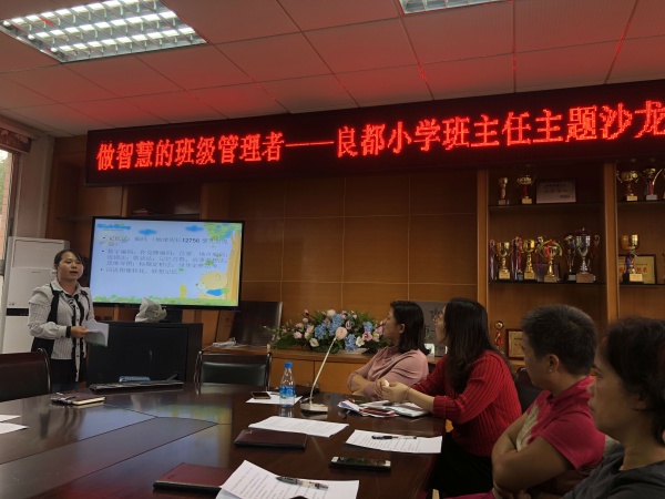 为加强班主任队伍建设,提高班主任工作水平,促进班主任之间管理智慧交流,12月17日下午,良都小学开展了“做智慧的班级管理者——良都小学班主任主题沙龙”活动。参加此次活动的人员有林泳瑶校长、吴丽欢副主任及全体班主任,活动由吴丽欢副主任主持。