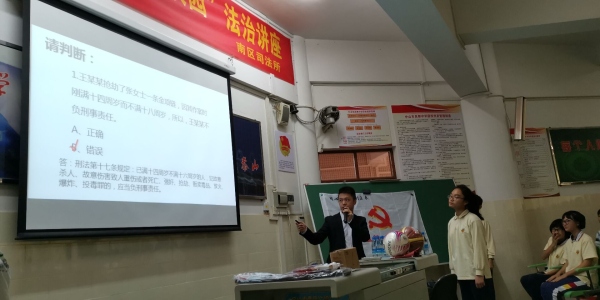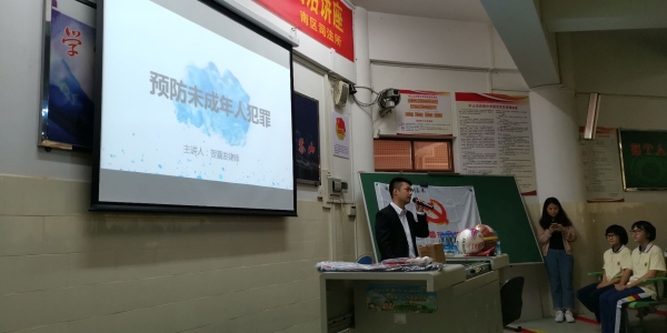 3月19日下午,良都中学在学校阶梯室组织学生参加了“预防未成年人犯罪”的法律知识讲座,讲座上邀请了广东凯行律师事务所贺嘉发律师跟同学们进行法律知识的讲解。