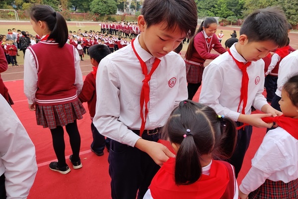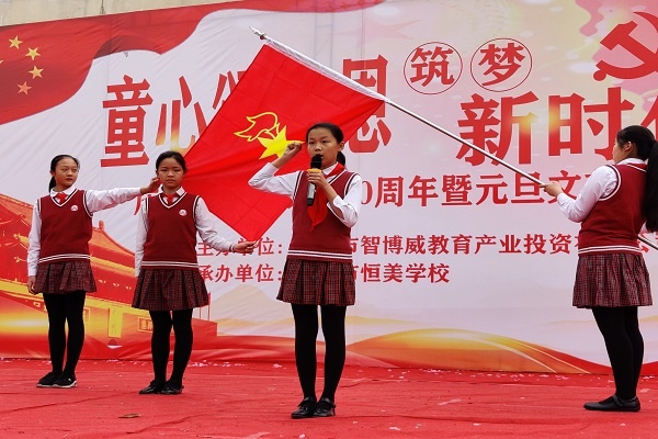 为教育学生继承和发扬中国少年先锋队的光荣传统,培养学生健康向上、积极进取的精神,增强学校少先队组织的力量, 2019年12月31日,恒美学校一年级的100名孩子在学校操场举行了庄严而神圣的少先队入队仪式。