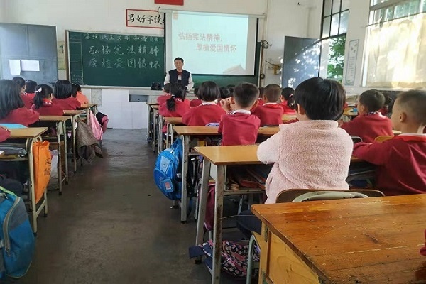 升旗仪式结束之后,各班在班主任的带领下,举行了“宪法晨读活动”。“中华人民共和国是工人阶级领导的、以工农联盟为基础的人民民主专政的社会主义国家......”阵阵读书声从校园里传出来,传到很远的地方去,宪法精神也像这响亮的童声一样响彻校园,影响着更多的人。