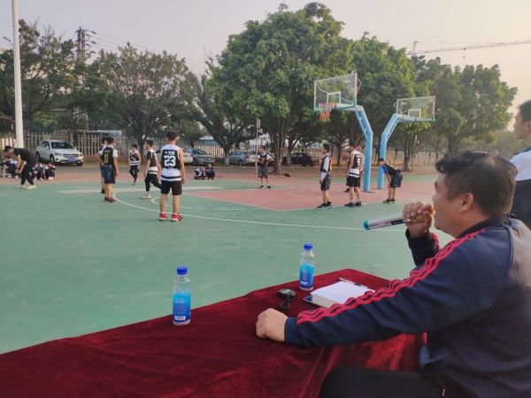 随着哨音的吹响,南头镇初级中学篮球赛开始了。在学校领导和各位老师的大力支持以及广大学生的积极参与下,本次参加比赛的队伍都在积极备战,在球场上大显身手。