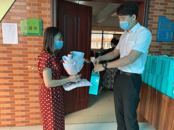 考虑到经历了漫长的假期和居家办公,老师们返校办公可能会有些不适应,集团董事会和学校精心为每一位老师准备了一个仪式感满满的上班仪式。在会场门口,两位高大帅气、青春靓丽的“司仪”给每一位进入会场的老师郑重递上一份精美、别致的礼物——一束美丽的鲜花和一个礼品袋,此情此景,对于疫情过后第一天返校上班的老师们来说,除了满心的惊喜就是深深地感动了,这个如此意义非凡、如此隆重的上班仪式一定会留在记忆里,成为他们最美好的回忆!