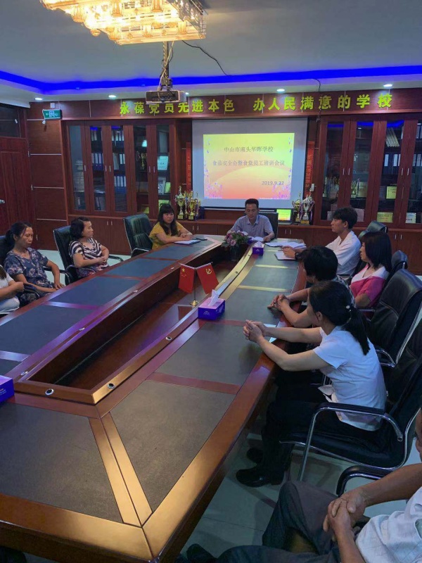 学校食堂关系师生身体健康,既是提供生活服务的地方,也是重要的育人场所。南头华晖学校高度重视并采取有力措施,把学校食堂打造成安全、实惠、温馨舒适的场所。为切实加强南头华晖学校师生食堂管理,保证该校全体师生饮食安全,改善学生营养状况,保障学生身体健康,南头华晖学校于2019年9月23日下午召开了师生食堂工作人员培训会,该校管理人员及师生食堂全体工作人员参加了会议。