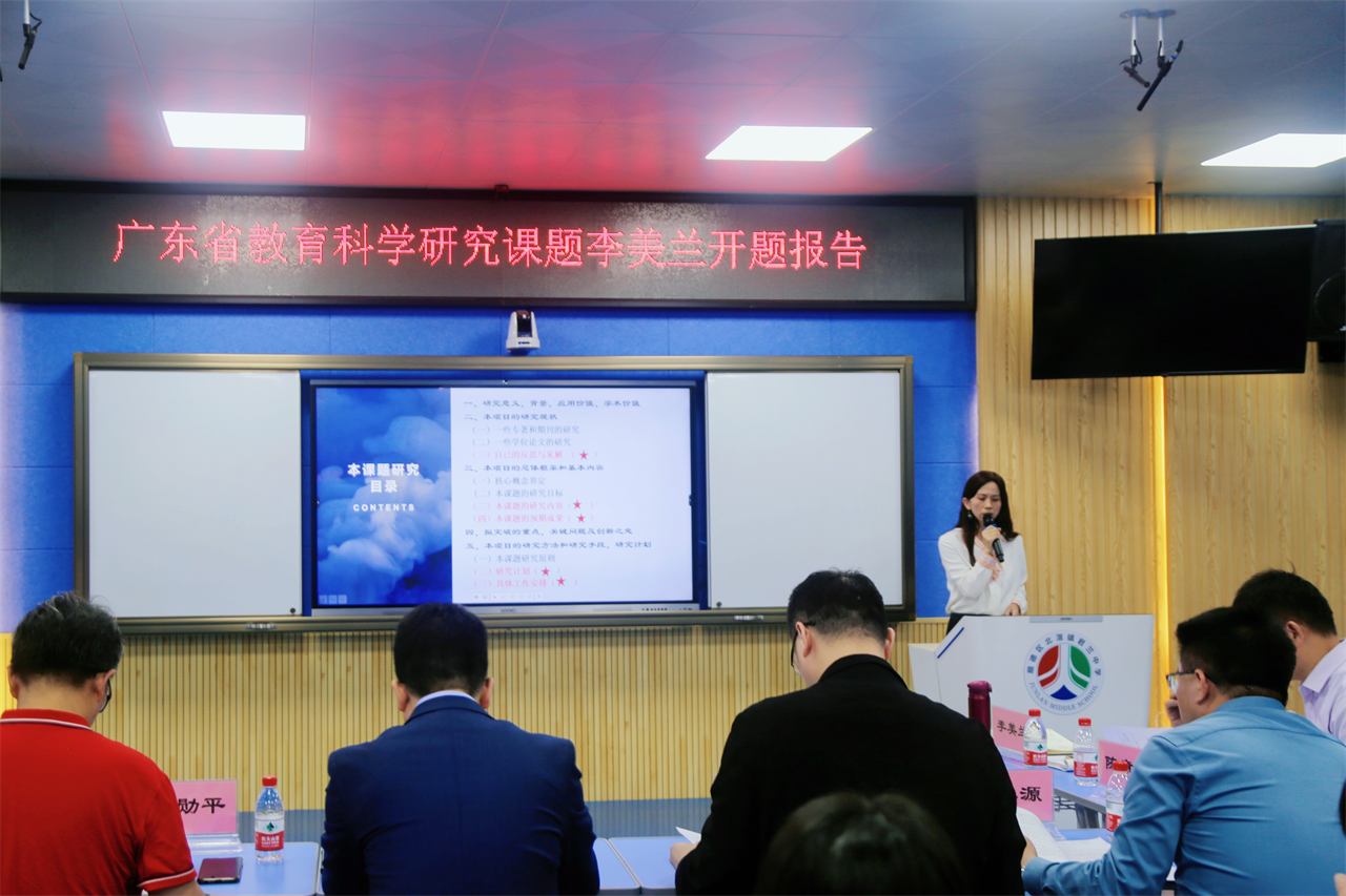 教而不研则浅,研而不教则空。学校要发展,科研必先行,课题研究是教育科研活动的一项重要内容。为进一步提升教师的研究能力,深化课题研究的内容,拓宽课题的研究思路,2023年3月17日下午,北滘镇君兰中学录播室隆重举行了名师工作室专家讲座暨省级课题开题活动。 四位评审专家莅临我校,他们分别是:广东省教研员施美彬老师、佛山市教研室初中部雷波主任、乐从中学申水源校长,以及顺德区教研员远勋平老师。北滘镇教研室黄昌略副主任和君兰中学杨立新校长出席了本次活动。活动由君兰中学教研室陈章春主任主持。 申水源校长认为,通过自助、互助、师助三个环节,能够很好地培养学生的核心素养和学习力。最后,申校长鼓励教师多总结多反思,积极去参加课堂教学改革,从而提炼并形成自己的教学风格和思想。 ////// 第二项议程是李美兰老师就《核心素养导向的“一课一题”初中数学大单元复习课教学模式与策略研究》作开题报告。 李美兰老师向专家组详细汇报了课题选题的初衷,畅谈了对课题研究定位的理解,深入细致地分析了课题研究背景、选题意义、概念界定、研究目标、研究方法、研究内容、研究步骤、成员的分工、研究进度、研究经费分配及预期研究成果等。 ////// 在专家提问质疑环节,与会的四位评审专家以严谨科学的的态度,对开题报告进行了精准的点评与专业的指导,并表达了对课题研究的期望,使课题研究方向更加明确,也增强了课题组研究成员的信心。 ////// 黄昌略副主任就本次会议做出了深刻的总结和课题未来的修改提出了指导意见,也希望课题组能认真根据专家的意见和建议,修改和完善研究的方案,确保科学、有序、顺利开展后续研究。 杨立新校长对各位评审专家的莅临指导表示了感谢,同时鼓励老师们以此次开题报告会为契机,以提升师生素养为目的,以课堂实践为抓手,努力把课题研究做出实效,形成具有操作性和示范性的科研成果,以点带面进行辐射。 //////