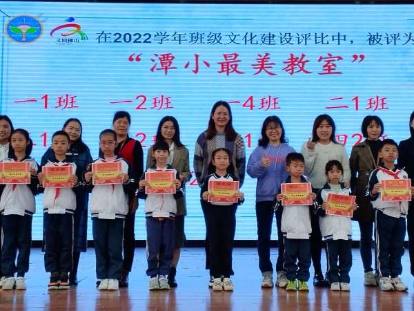 学校德育部门从班级整体布局、小组文化建设、班级组织建设、黑板报、班级特色文化、班级主题专栏以及环境卫生等方面对进行了综合评价,评选出潭小“最美教室”。4月3日的升旗仪式上,德育处副主任何焕贞宣布了获得“最美教室”称号的班级,随后钟雪城校长为获奖班级的班主任和学生代表颁发“最美教室”的奖状。