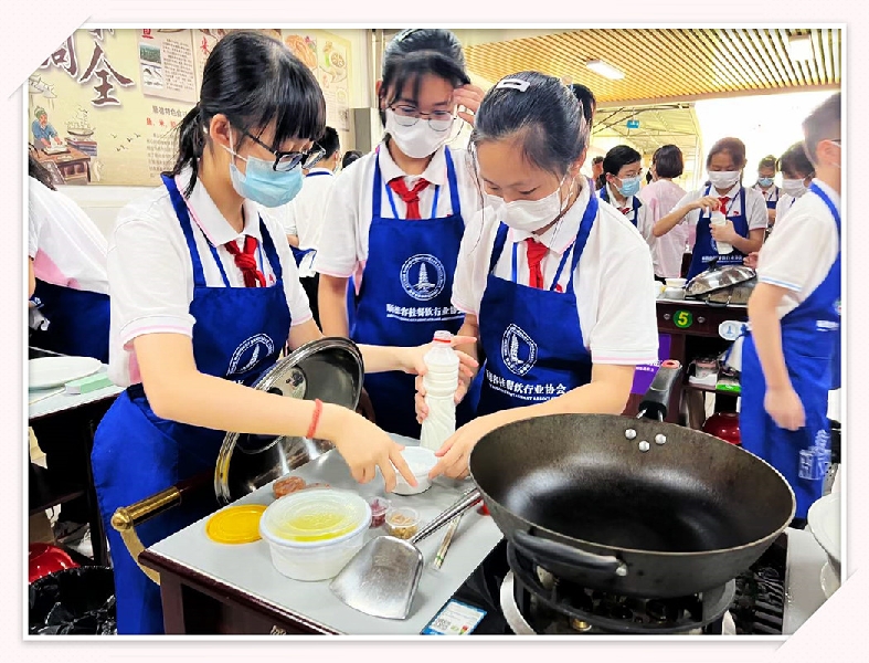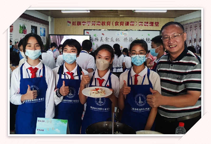 红旗中学2019年开始构想、实施劳动教育课程,且成效显著,获评佛山市中小学劳动教育特色学校,CCTV-10科教频道《味道》栏目摄制组走进学校劳动教育实训课堂拍摄,《基于“顺德美食文化”的家、校、社区融合劳动教育路径探索与实践》课题被立项为省级劳动教育课题……短短三年时间,红旗中学的美食特色劳动教育已拥有多个亮眼“标签”。