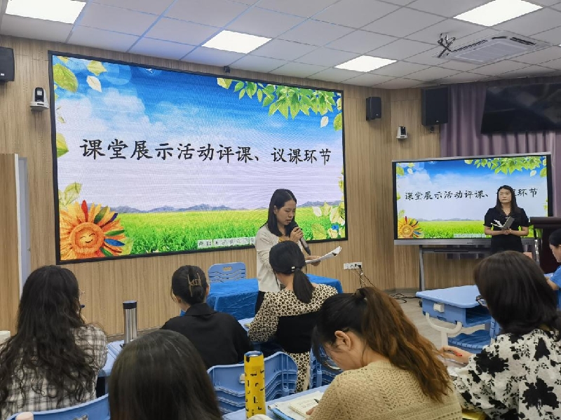 活动第二项议程,由各校低、中、高年段代表教师进行评课、议课。有的老师从教学设计的整体性进行评课,有的老师关注课堂中学生的生成输出,大家各抒己见、积极研讨,取得了良好成效,进一步推动龙江镇区域联合教研第二共同体的三所学校教学共研、资源共享、差异互补,在思想火花的碰撞中共同进步。