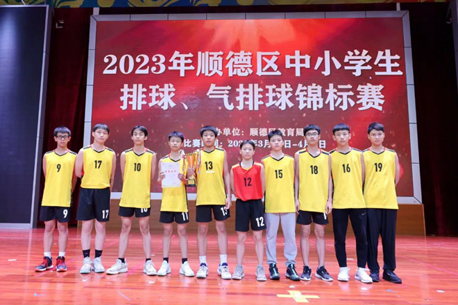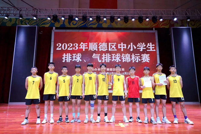 2023年顺德区中小学生排球、气排球锦标赛,乙组、丙组比赛在江义中学举行。江义中学共派出四支队伍参加本次比赛,男子一队、二队分别获得第一名和第三名,女队获得第八名。