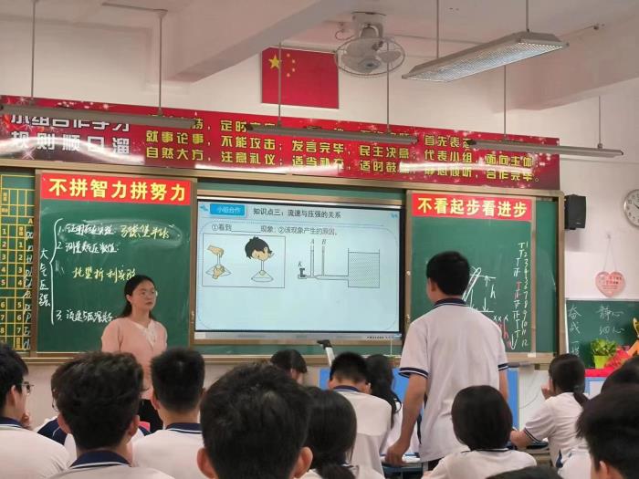 叶倩美老师的《大气压强 流体压强与流速的关系》课堂作为一节复习课,利用思维导图引入帮助学生建构知识框架,通过“请学生喝饮料”“天女散花”“实验视频”等方式摆脱上复习课的枯燥,通过知识点间的相互关系举一反三,讲练结合,突破重难点。
