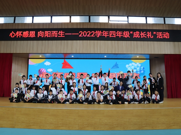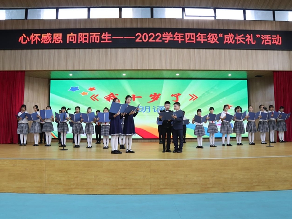 十岁,是人生的一个新起点!十岁,是人生又翻开了崭新的一页,为了梦想展翅飞翔,开启新的旅程。2022年4月7日上午,龙江外国语学校附属小学四年级全体师生、各班家长代表欢聚在学校体育馆,举行了一场以“心怀感恩,向阳而生” 为主题的成长礼活动。
