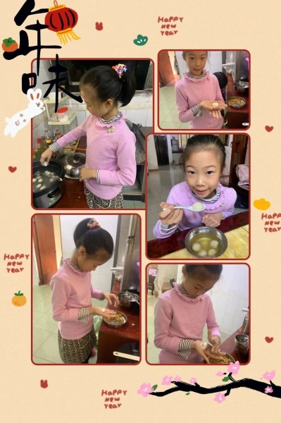 元宵节吃汤圆的习俗流传已久,正月十五吃元宵是我国由来已久的节日习俗,元宵又称为“汤圆”,它飘在碗里,像是一轮明月挂在天际。天上月圆,碗里汤圆,家人团圆,以象征团圆吉利之意。学生和家人们用各种材料做元宵、吃元宵,品尝生活的幸福与甜蜜。