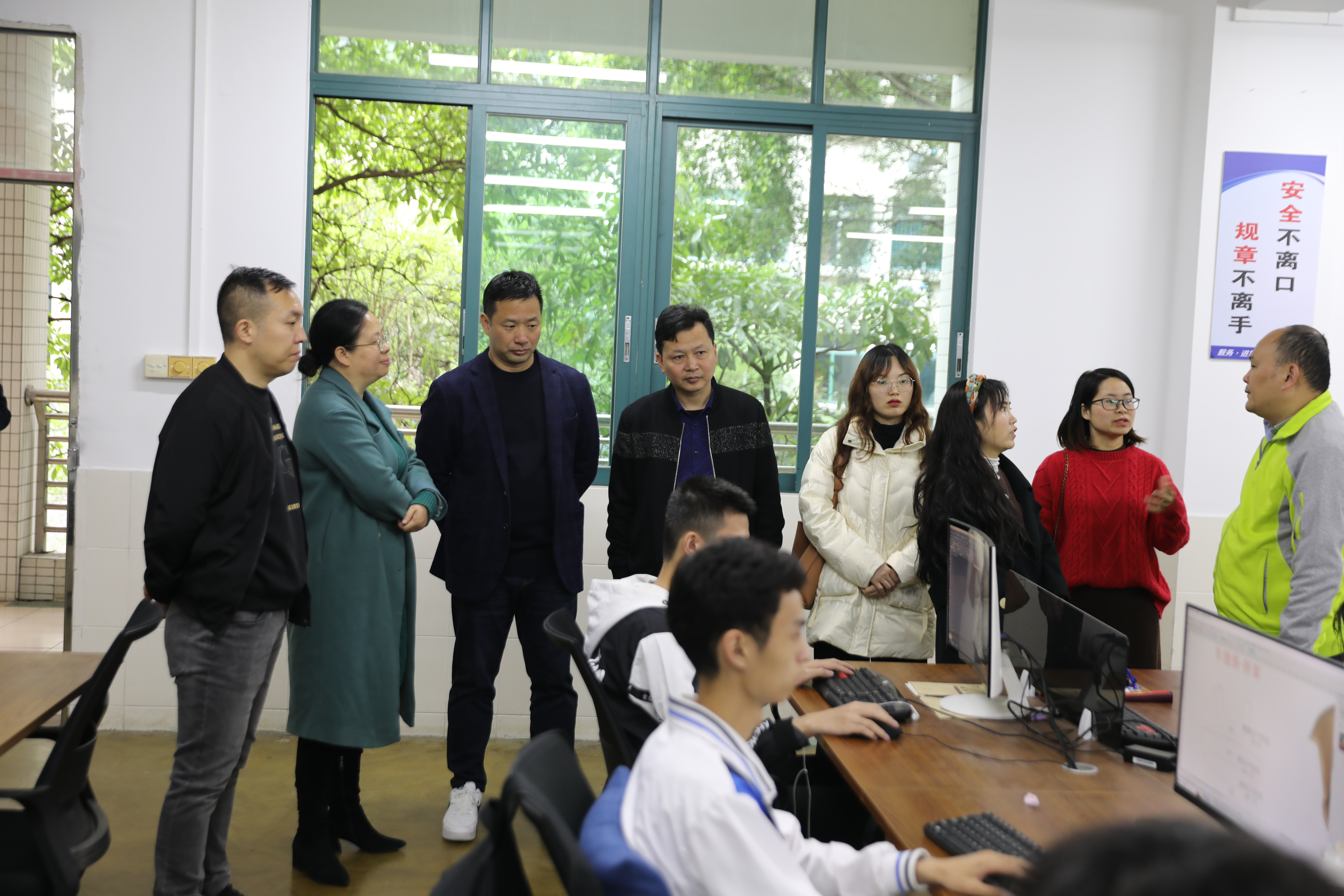 驻足观看同学们实训