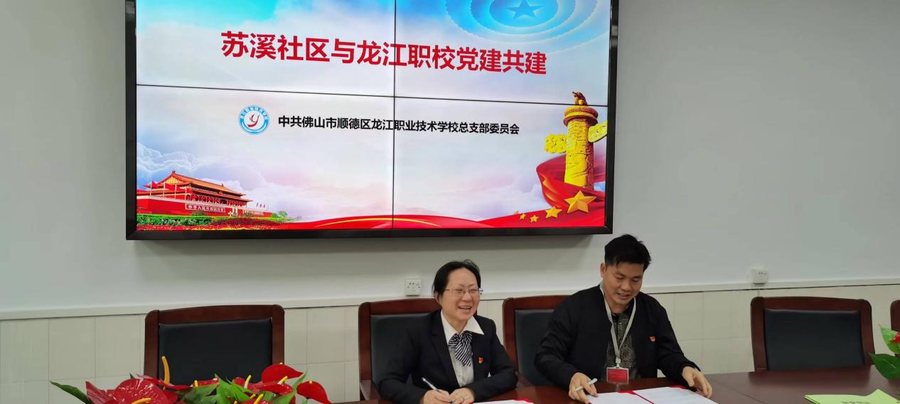为切实发挥党建引领,凝聚共建合力,推动党建“融入村居发展、融入学校提升、融入校企共建”,2023年4月7日,龙江职业技术学校第二党支部与苏溪社区党支部在我校举行党建共建结对暨签约仪式。