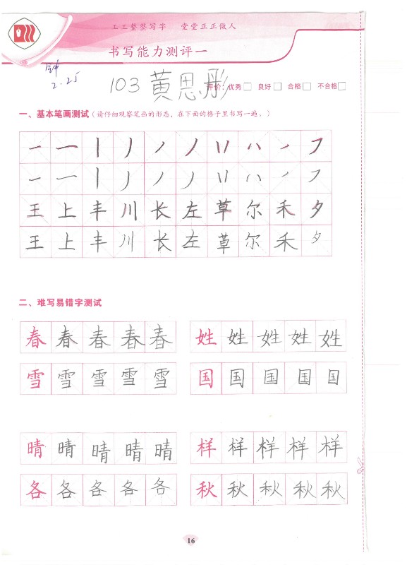 【有容书艺】容山小学2月份硬笔书法测评作品展