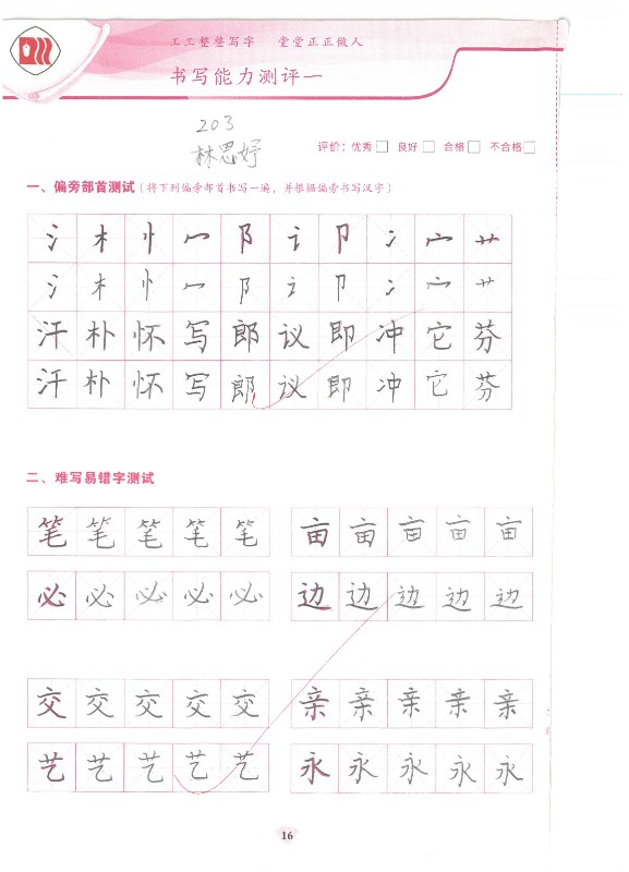 练好字、写好字难在坚持,贵在坚持,成在坚持。为鼓励学生坚持练字,学校每月举办一次全校性的“有容书艺”硬笔书法测评活动,奖励书写规范、认真、美观的学生。