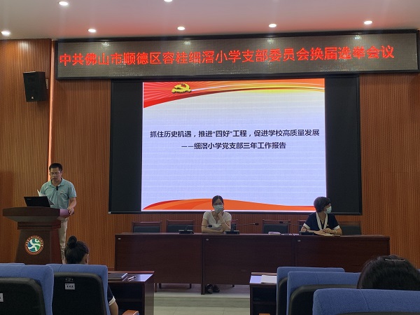 2022年9月26日下午,容桂细滘小学党支部换届选举大会在庄严的国歌声中拉开了帷幕,大会将选举产生新一届支部委员。