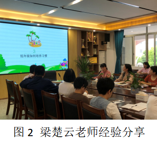 分享会上,梁楚云老师结合自己的实际工作和真实的教育案例,分别从不同的角度分享了如何让低年级学生养成良好的学习习惯、生活习惯和行为习惯,如何跟家长建立良好的沟通,面对特殊学生应该怎么教育等经验做法。