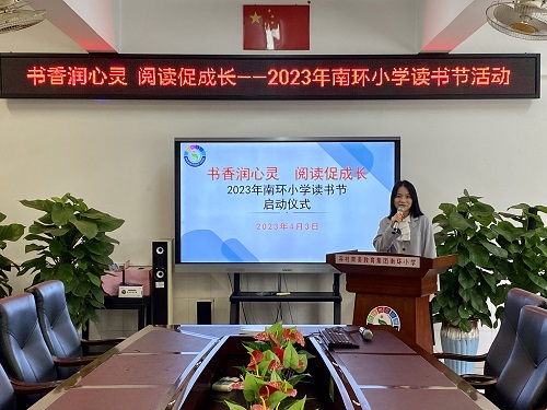 为进一步拓宽同学们的阅读面和知识面,感受阅读的快乐,养成良好的读书习惯,培养浓厚的读书兴趣,逐步引导同学们走进“深度阅读”,培养阅读的高阶思维,提升师生的思想涵养和精神品位,营造人人热爱读书、善于读书的氛围,4月3日上午,南环小学全体师生共同参加“书香润心灵 阅读促成长”读书节启动仪式。