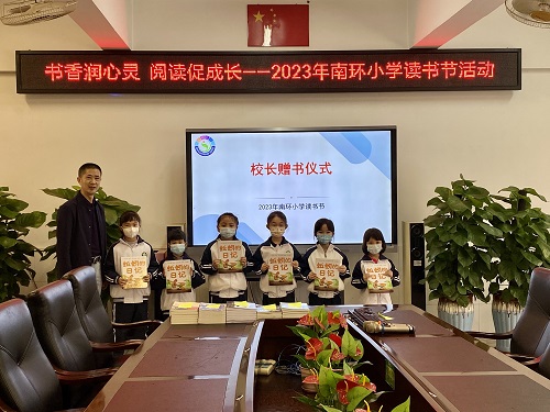 紧接着,南环小学曾庆辉校长为读书节致开幕词:“知之者不如好之者,好之者不如乐之者。”曾校长提倡:星空体育要品读经典,不管何时何地,星空体育用阅读浸润人生,为自己树立崇高理想,在纷乱中修静气练定力。星空体育要学习榜样,阅读让星空体育跨越时间、空间与智者、勇者进行着精神交流,书中有博学多才的智者,亦有今日不畏艰难逆流而上的勇者。让同学们博览群书,树立自己的心中榜样吧!曾校长希望同学们在家长、老师的帮助下,手捧诗书与经典同行,细品文字与智者对话,在阅读中丰厚与成长。随后,曾校长还亲自为各级各班捐赠自己亲自签名的图书,同学们手捧书籍,脸上洋溢着青春的笑容,好书赠少年,愿每位少年都能从好书中找到属于自己的光亮与温暖。