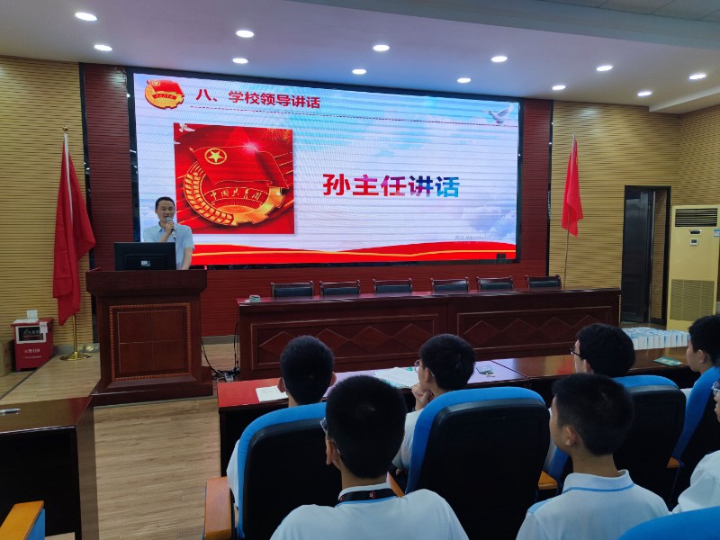 德育处副主任孙磊在入团仪式上对新团员提出希望和要求,希望广大团员青年志存高远,努力成长成才,让青春在党和人民最需要的地方绽放绚丽之花。