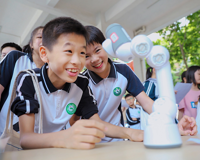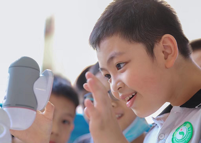 本次游园活动特邀了容桂青促会及其会员单位参与最新型编程机器人——可立宝机器人的展示。在周一的升旗仪式上,同学们已经观看了机器人的卖萌、跨越障碍和捡东西等精彩表演,很想近距离地一睹机器人的风采。在周五下午的游园体验活动中,青促会的操作导师们还带来了电视屏幕,同学们既可以通过视频观看到最新的科技发展成果,还可以亲自动手组装和控制机器人,并进行简单的互动。会打招呼的机器人,还有会出考题的机器人吸引了同学们的注意力——嵌入情感互动的机器人,就好像电影《超能陆战队》里面的大白一样,真的太有趣了!