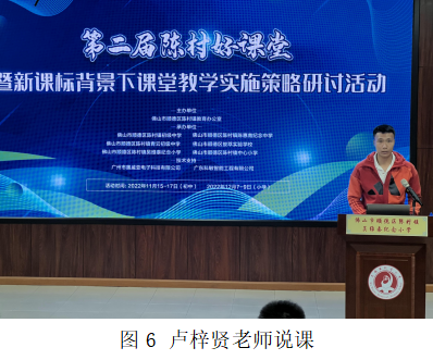 随后由南粤优秀教师、佛山市名教师、市区兼职教研员莫建山主任对课堂点评,他点评道:卢老师和陈老师教学基本功扎实,教态自然。能准确理解教学内容,进行合理教学设计,教学手段有效,均达到较好的效果。
