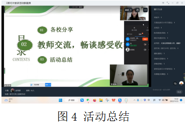 本次教研活动分为三个环节,第一环节是各校代表分享汇报,第二环节是教师交流谈感受,第三环节是活动总结。
