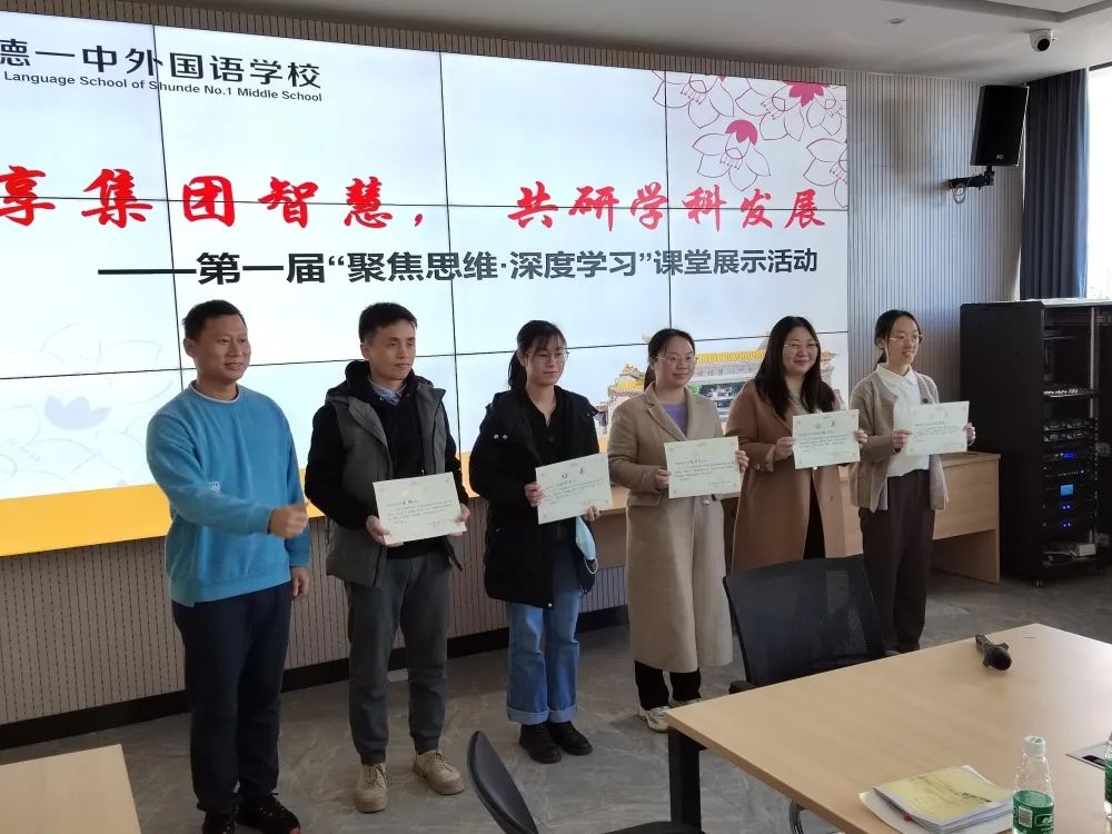 合影 物理科组 在主题为“共享集团智慧,共研学科发展”的第一届“聚焦思维·深度学习”课堂展示活动中,顺德一中外国语学校物理科组杨欣老师从一块普通的石头入手,成功吸引了学生的兴趣。之后,杨老师介绍了量筒的使用方法以及注意事项,为后面测量固体的体积埋下了伏笔,让学生亲手实验测量出不同小石块的密度,体验到做实验的乐趣,从测固体的密度很好地转移到测液体的密度,并且引导学生用不同的方法测量液体的密度并进行比较,最后通过题目来巩固所学的知识。整节课师生互动较好,课程紧凑,能够很好地引导学生进行并完成实验,达成了教学目标。 顺德一中外国语学校 杨欣老师 紧接着由顺德一中西南学校的刘意饶老师展示了八年级上册的《6.4测量物质的密度》一课,她从一段假黄金流入香港市场的视频入手成功吸引了同学们的兴趣,然后通过测量小石块密度的实验,让学生学会从生活走向物理,了解物理的用处,体会到物理的乐趣,最后与测量密度的两种方法作结,使学生的知识得到了升华。 顺德一中西南学校 刘意饶老师 公开课后,参与听课学校的老师一起座谈交流,杨老师和刘老师对公开课的教学设计、目标作解读。顺德一中高中部的赵明月、杨伟清老师肯定了杨老师整节课有多个亮点:1.本节课结构内容丰富,思路清晰,环环相扣,提升了学生思考论证的过程。2.课堂气氛活跃,教师的反应速度很快,注意到给学生一定的时间做笔记。3.时间把控合理,学生有思考有讨论4.做到了从生活走向物理,再从物理走向生活。5.语言简练,基本功扎实。对于刘老师,他们认为:刘老师的课引入提升了学习的高度,拉近了与学生的距离,刘老师给予学生的探究时间较为充分,结构完善,最后在表格部分,把学生的结果拍照展示,充分展现了学生的主体地位。 评课环节 最后,顺德一中陈理老师为一中教育集团的老师们带来《初高物理一盘棋》微讲座,陈老师从课标、核心素养、教材、内容等方面比较了初中和高中物理的异同,很好地告诉初中老师应怎样更好地进行初中物理教学,实现初高衔接,在场教师深受启发。 合影 策马扬鞭正当时,矢志笃行立芳华。踏浪前行风正劲,不负韶华争朝夕。