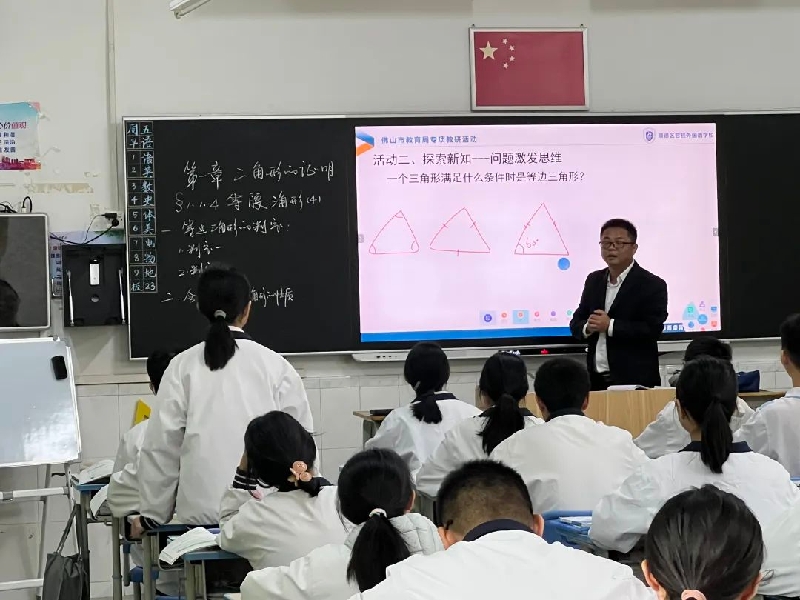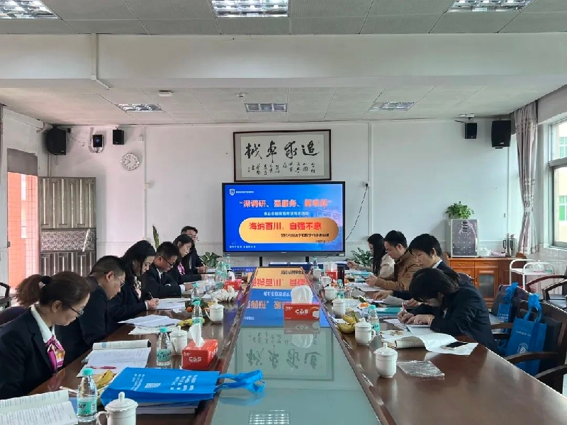 春归万物生,策马踏新程。为构建佛山“五好教育”新形态,并结合目前佛山市教研体系“四梁八柱”建设内容,2月17日,由佛山市教育局教学研究室初中部主任雷波带队,顺德区教育发展中心初中数学教研员远勋平、市区两级数学学科教研员朱锐、梁甘棠、周伟松、区宝莹、聂霞、范明明、林洁茹、谭红良、肖智胜、梁福新、欧雅燕等组成的调研组,莅临容桂外国语学校开展“深调研、强服务、解难题”专项调研活动